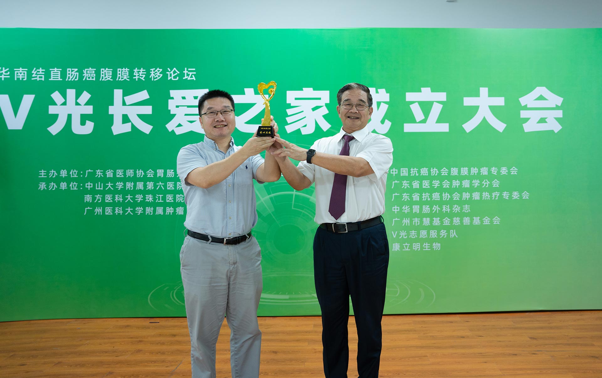 在成立大會(huì)上,“V光長(zhǎng)愛(ài)之家”為鄒鴻志教授頒發(fā)了“V光長(zhǎng)愛(ài)之家愛(ài)心大使”獎(jiǎng)杯,作為腸癌早篩技術(shù)發(fā)明人,感謝鄒鴻志博士對(duì)腸癌檢測(cè)預(yù)防事業(yè)的付出及對(duì)公益事業(yè)的大力支持。